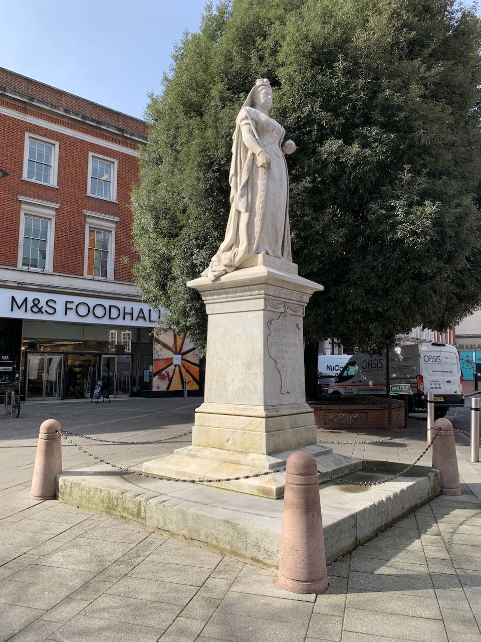 The statue of Queen Victoria in Town Hall Square has benefited from High Streets Heritage Action Zone funding. It has been cleaned and the long lost chains between the bollards at the base have been replaced.